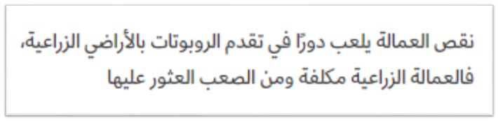 بالإضافة إلى القلق بشأن الكيماويات الزراعية، فإن نقص العمالة يلعب دورًا في تقدم الروبوتات بالأراضي الزراعية، فالعمالة الزراعية مكلفة ومن الصعب العثور عليها وخطيرة بالنسبة للأشخاص العاملين فيها، يقول مايرز في أحد مقاطع الفيديو على تيك توك إنه لم يتمكن من توظيف عمال لحصاد محصول الهيليون لأن الحكومة لم تمنحه التأشيرات في الوقت المناسب.