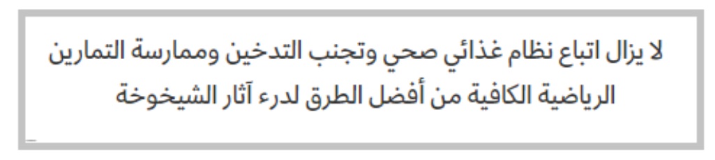 في هذه الأثناء؛ لا يزال اتباع نظام غذائي صحي وتجنب التدخين وممارسة التمارين الرياضية الكافية من أفضل الطرق لدرء آثار الشيخوخة، ولسنا بحاجة إلى ساعات شيخوخة جديدة لإثبات أن هذه الإستراتيجيات يمكن أن تساعدنا في الحفاظ على صحتنا.